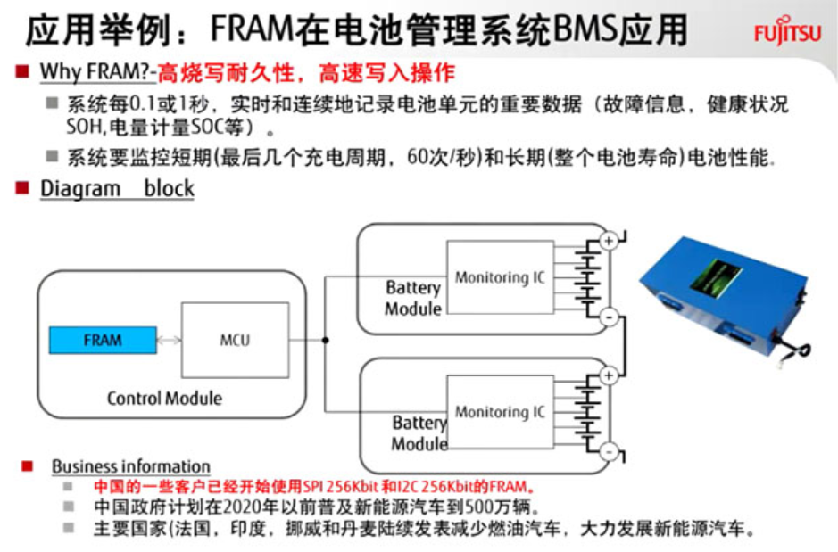 FRAM高耐久(可擦寫(xiě)10萬(wàn)億次)的特性,剛好滿(mǎn)足BMS等關(guān)鍵型應(yīng)用對(duì)存儲(chǔ)器的優(yōu)異性能與穩(wěn)定可靠的需求。
