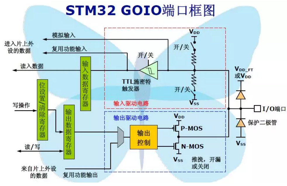 7、GPIO口貌似有兩個反向串聯(lián)的二極管用作鉗位二極管
