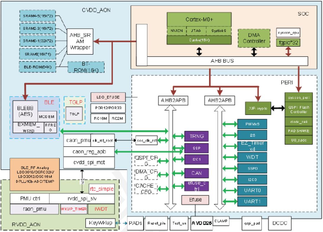 MS1636擁有多達(dá)27個(gè)GPIO可以更好的滿足IDH對(duì)應(yīng)外設(shè)的管理要求。自主知識(shí)產(chǎn)權(quán)的藍(lán)牙通信模塊,也可以提供更靈活的無(wú)線收發(fā)需求,同時(shí),不需要更多的外部器件。MS1636集成DC-DC電壓轉(zhuǎn)換器,并提供多種低功耗工作模式。滿足從高性能要求,到低功耗要求的各種物聯(lián)網(wǎng)和可穿戴產(chǎn)品設(shè)計(jì)要求。