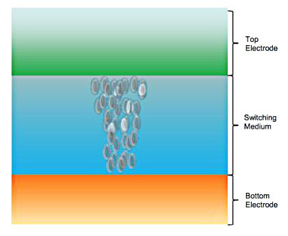OxRAM 和 CBRAM 都是二端器件——由一個(gè)頂部電極和一個(gè)底部電極組成。在兩個(gè)電極之間是開(kāi)關(guān)介質(zhì)。
